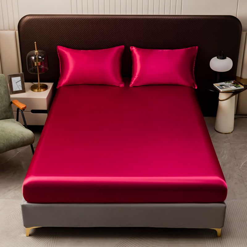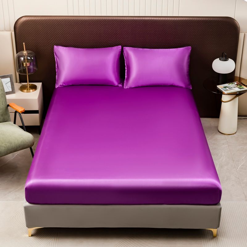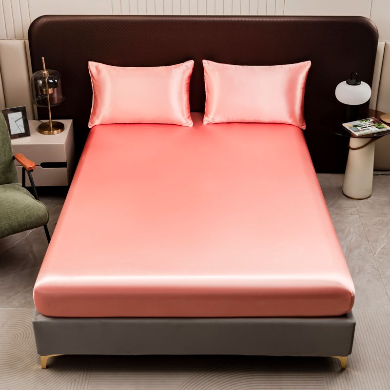 1Pc Satin Fitted Sheet Solid Colour Twin Full Queen Ice Silk Mattress Cover Natural With Elastic Band Bed Sheet (No Pillowcase)