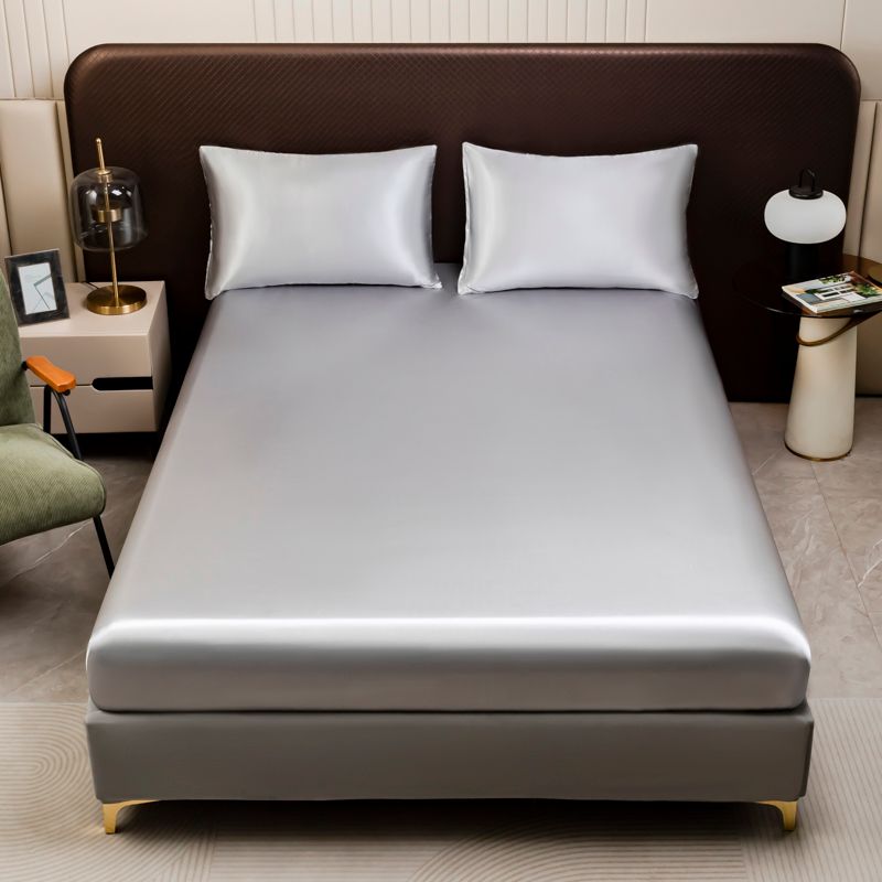 1Pc Satin Fitted Sheet Solid Colour Twin Full Queen Ice Silk Mattress Cover Natural With Elastic Band Bed Sheet (No Pillowcase)