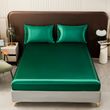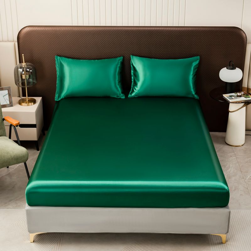 1Pc Satin Fitted Sheet Solid Colour Twin Full Queen Ice Silk Mattress Cover Natural With Elastic Band Bed Sheet (No Pillowcase)