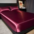 1Pc Satin Fitted Sheet Solid Colour Twin Full Queen Ice Silk Mattress Cover Natural With Elastic Band Bed Sheet (No Pillowcase)