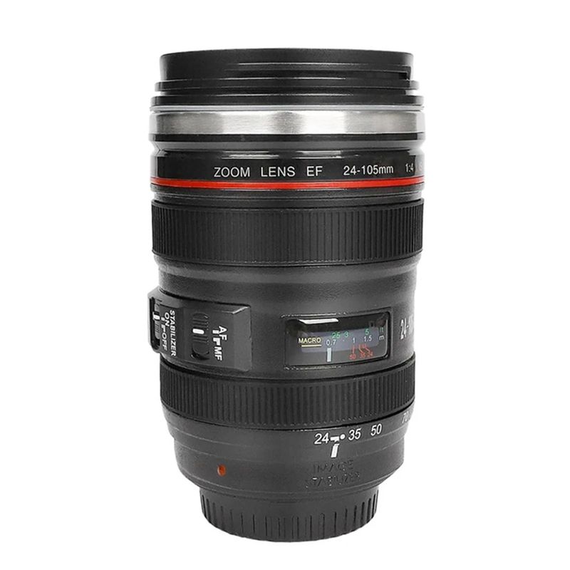 1pc SLR Lens Cup Camera Camera Lens Model Stainless Steel Casual Cup with Lid Coffee Mug White Black Coffee Mugs Creative Gift