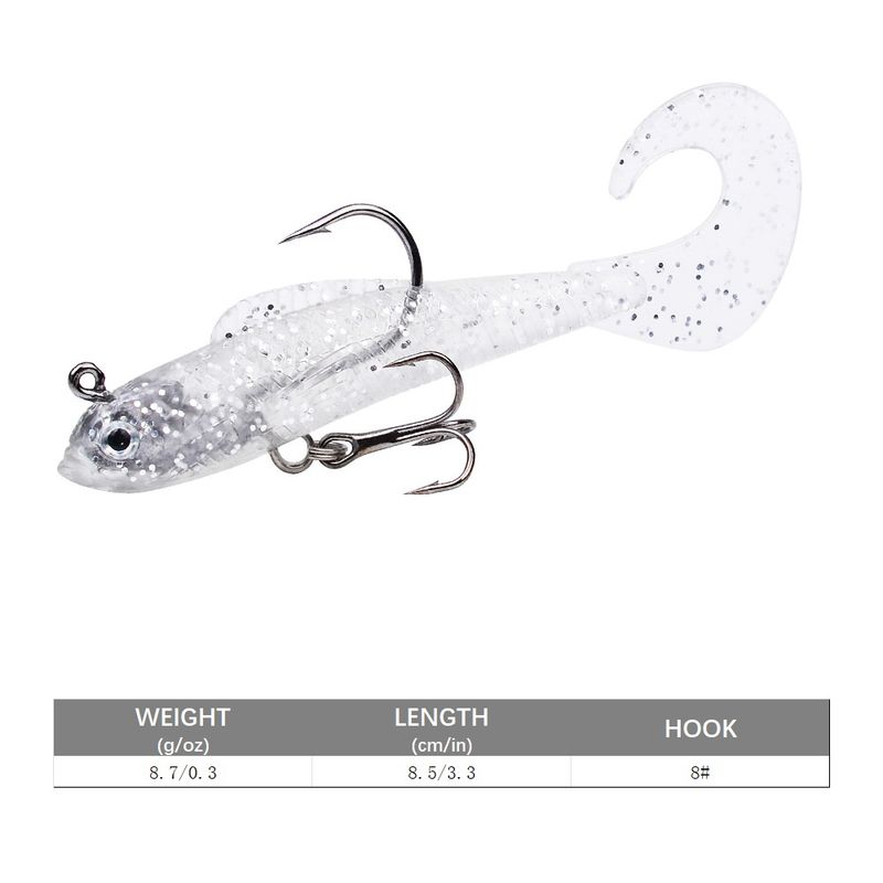 1pc Soft Bait Rubber Fishing Lure 75mm 85mm Artificial Sinking Swimbait Curly T Tail Jig Head Fishing Tackle Goods For Bass Pike