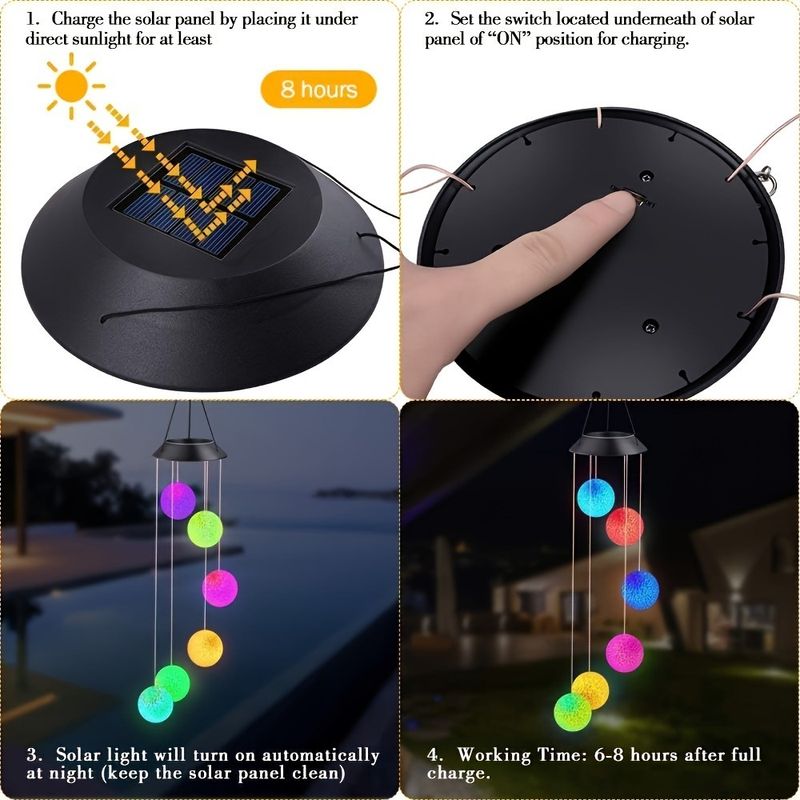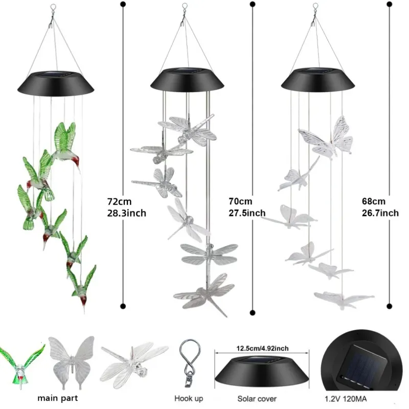 1PC Solar Wind Chime Outdoor, Color Changing Hanging Garden Light, Decorative Solar-Powered Chime Lighting for Patio/Yard