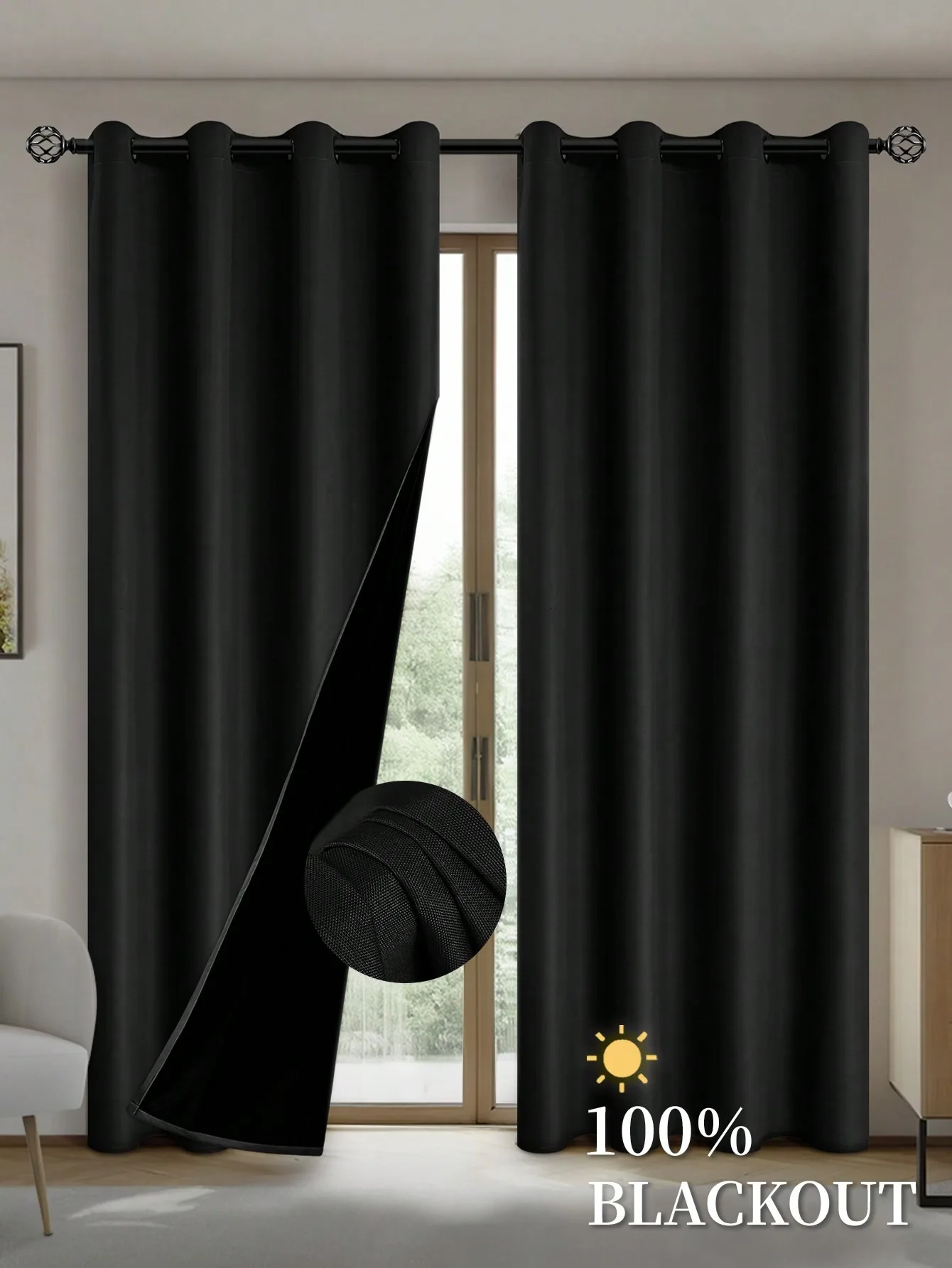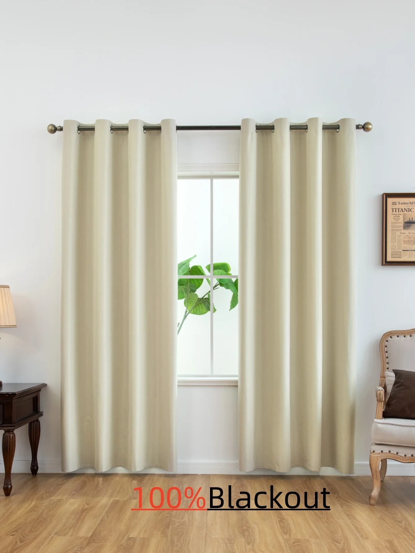 1pc Solid 100% Blackout Curtains with Grommets, Curtains for Bedroom, Living Room, Kitchen, Privacy Drapes, Window Curtain