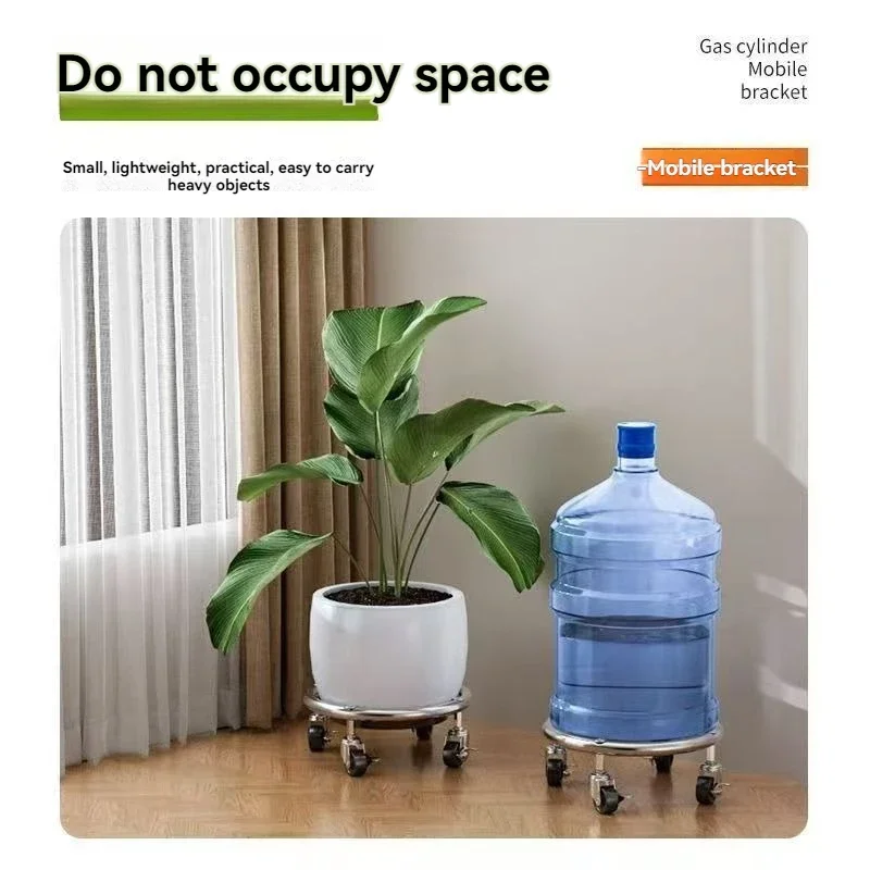 1Pc Stainless Steel Gas Cylinder Cart Mobile Base Plant Stand Mobile Propane Cylinder Base Tool Tray Heavy-duty Ergonomic Dolly