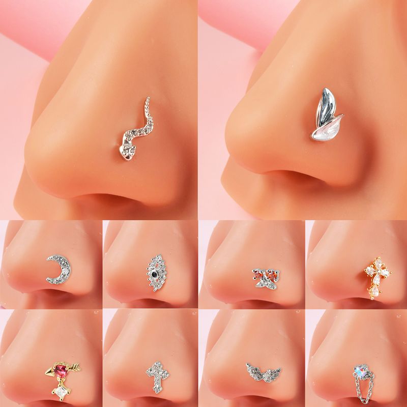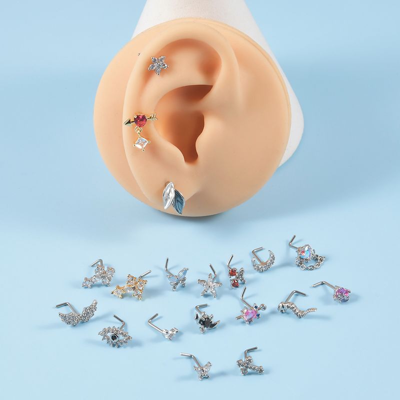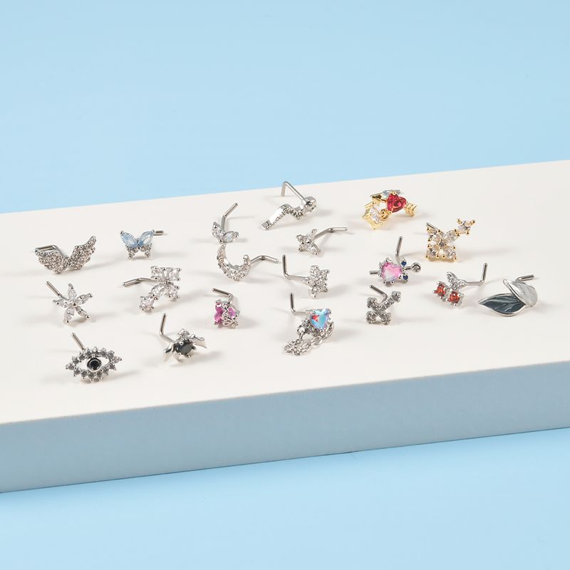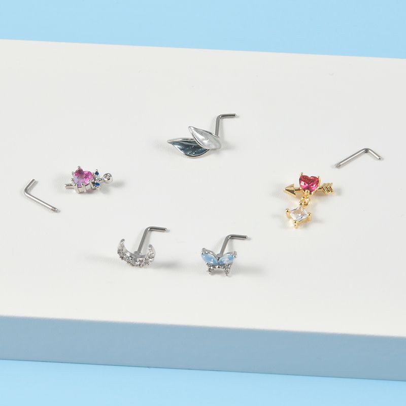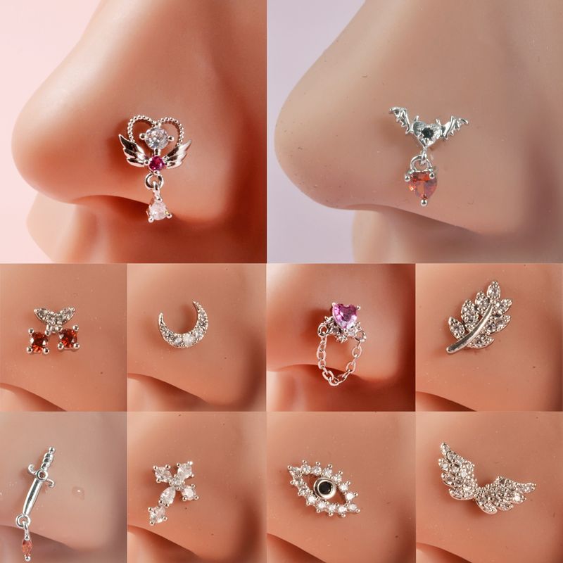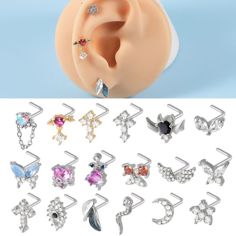 1PC Surgical Steel Cz Demon Angel Nose Studs Crystal Heart Dangle L Shape Nose Bone Ring Studs Ear Tragus Piercing Jewelry 20G