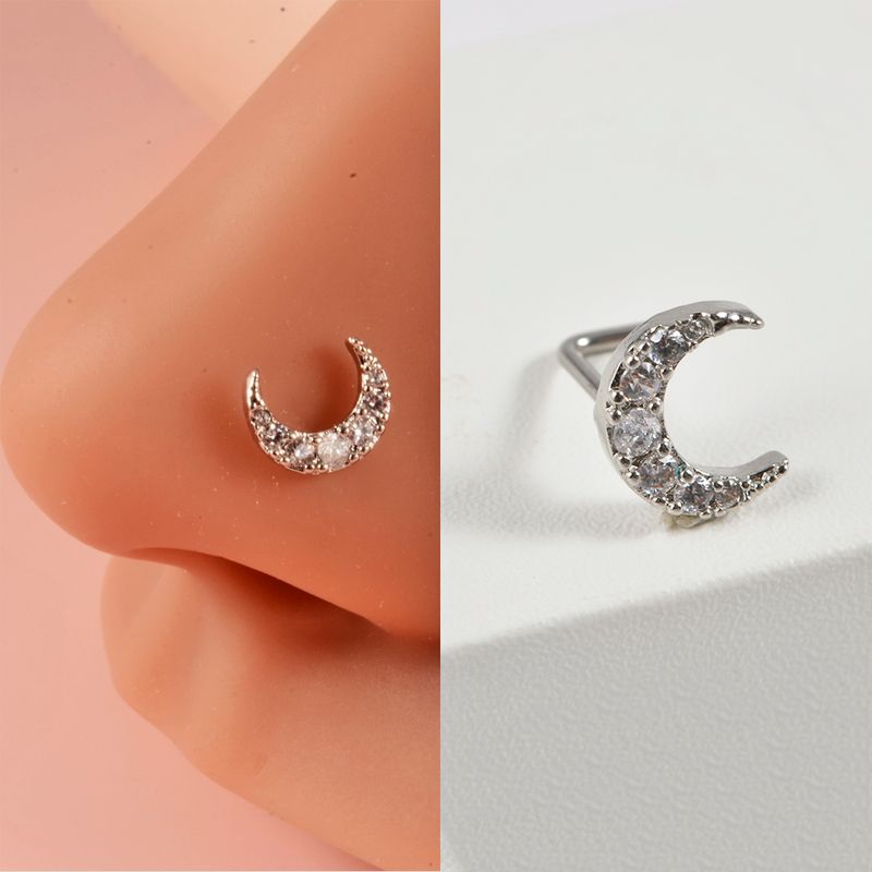 1PC Surgical Steel Cz Demon Angel Nose Studs Crystal Heart Dangle L Shape Nose Bone Ring Studs Ear Tragus Piercing Jewelry 20G