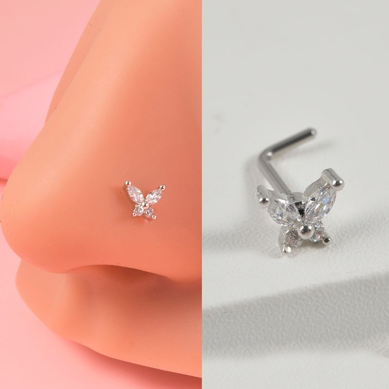 1PC Surgical Steel Cz Demon Angel Nose Studs Crystal Heart Dangle L Shape Nose Bone Ring Studs Ear Tragus Piercing Jewelry 20G
