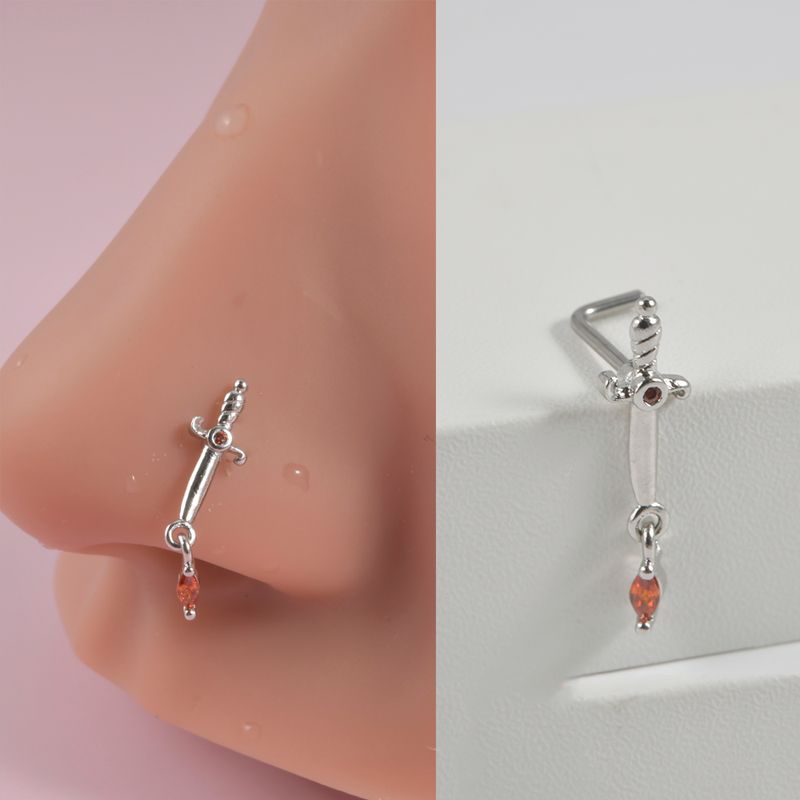 1PC Surgical Steel Cz Demon Angel Nose Studs Crystal Heart Dangle L Shape Nose Bone Ring Studs Ear Tragus Piercing Jewelry 20G