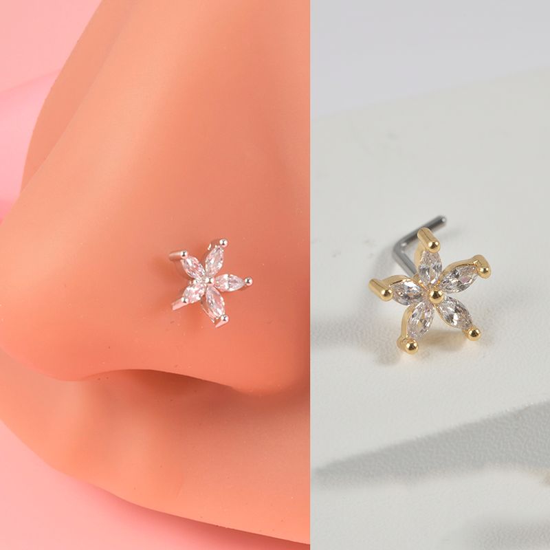 1PC Surgical Steel Cz Demon Angel Nose Studs Crystal Heart Dangle L Shape Nose Bone Ring Studs Ear Tragus Piercing Jewelry 20G