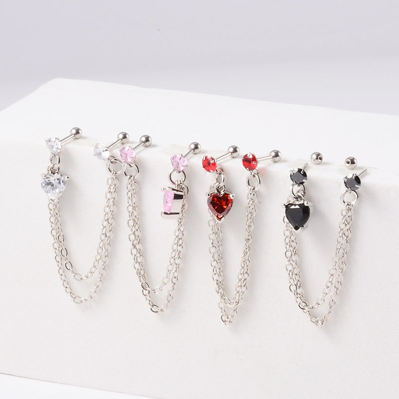 1PC Surgical Steel CZ Gem Ear Tragus Cartilage Piercing Zircon Dangle Chain Earring Conch Ear Stud Helix Piercing Body Jewelry
