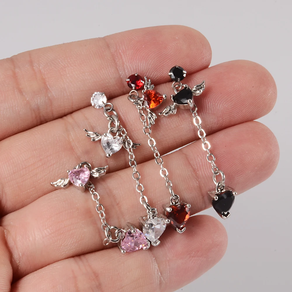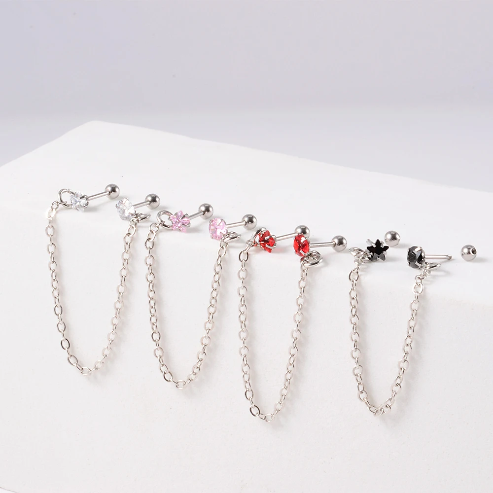 1PC Surgical Steel CZ Gem Ear Tragus Cartilage Piercing Zircon Dangle Chain Earring Conch Ear Stud Helix Piercing Body Jewelry