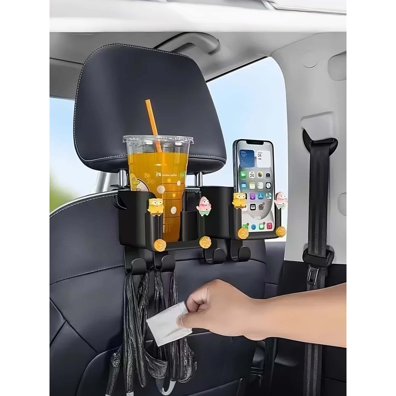 1Pc Multi-Functional Car Seat Back Organizer with Deepened Cup Holder & Hook, Suitable for Most Vehicle Models β Can Hold Water Bottles, Keys, Milk Tea, Garbage Bags and Facilitate Phone Charging