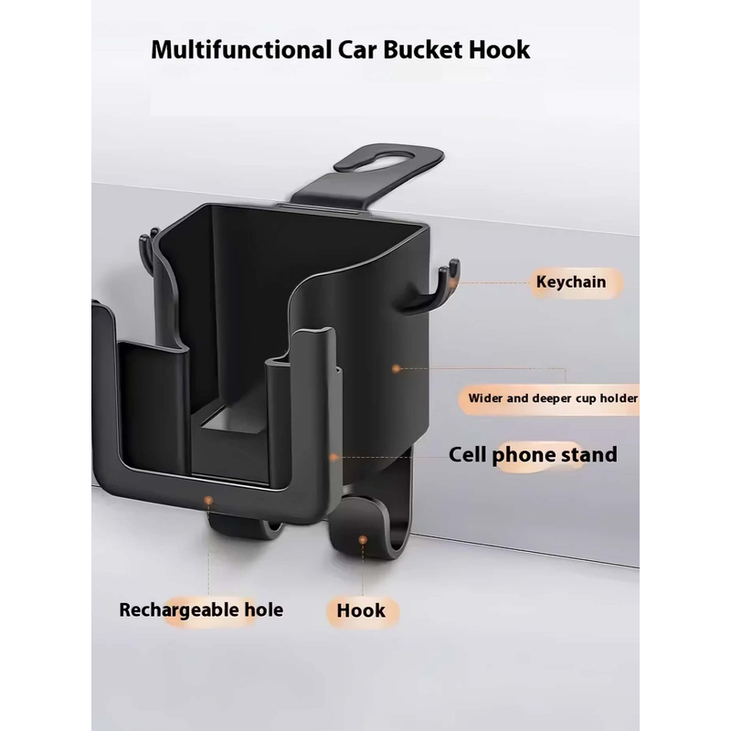 1Pc Multi-Functional Car Seat Back Organizer with Deepened Cup Holder & Hook, Suitable for Most Vehicle Models – Can Hold Water Bottles, Keys, Milk Tea, Garbage Bags and Facilitate Phone Charging