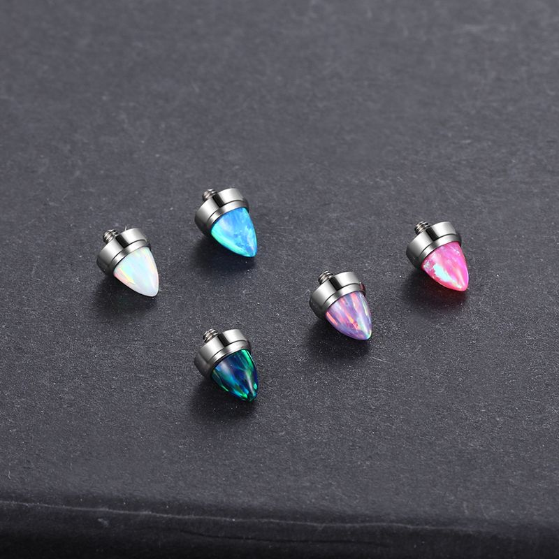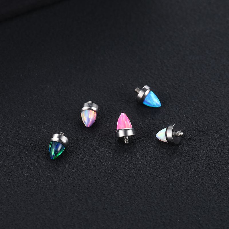 1PC Titanium Claw Set Opal Bullet Dermal Top Piercings Internally Threaded Ends Nipple Helix Industrial Piercings Nostril Rings