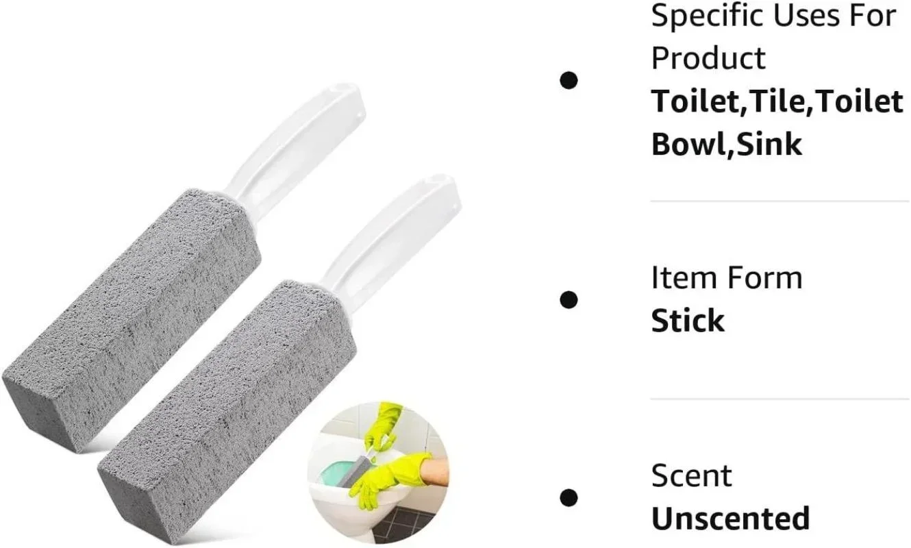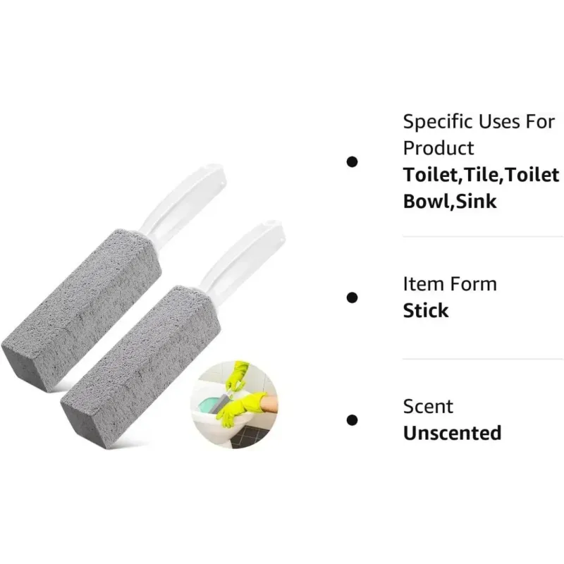[HIGH QUALITY MATERIAL] - This toiler bowl cleaning tool is built with natural pumice stone which features non-toxic, odorless and BPA free, no more pungent chemical cleanser. The pumice cleaning stone is totally safe and friendly for human beings, pets, plants and water, and it never leave scratches on the surface of the ceramic tile and metal.