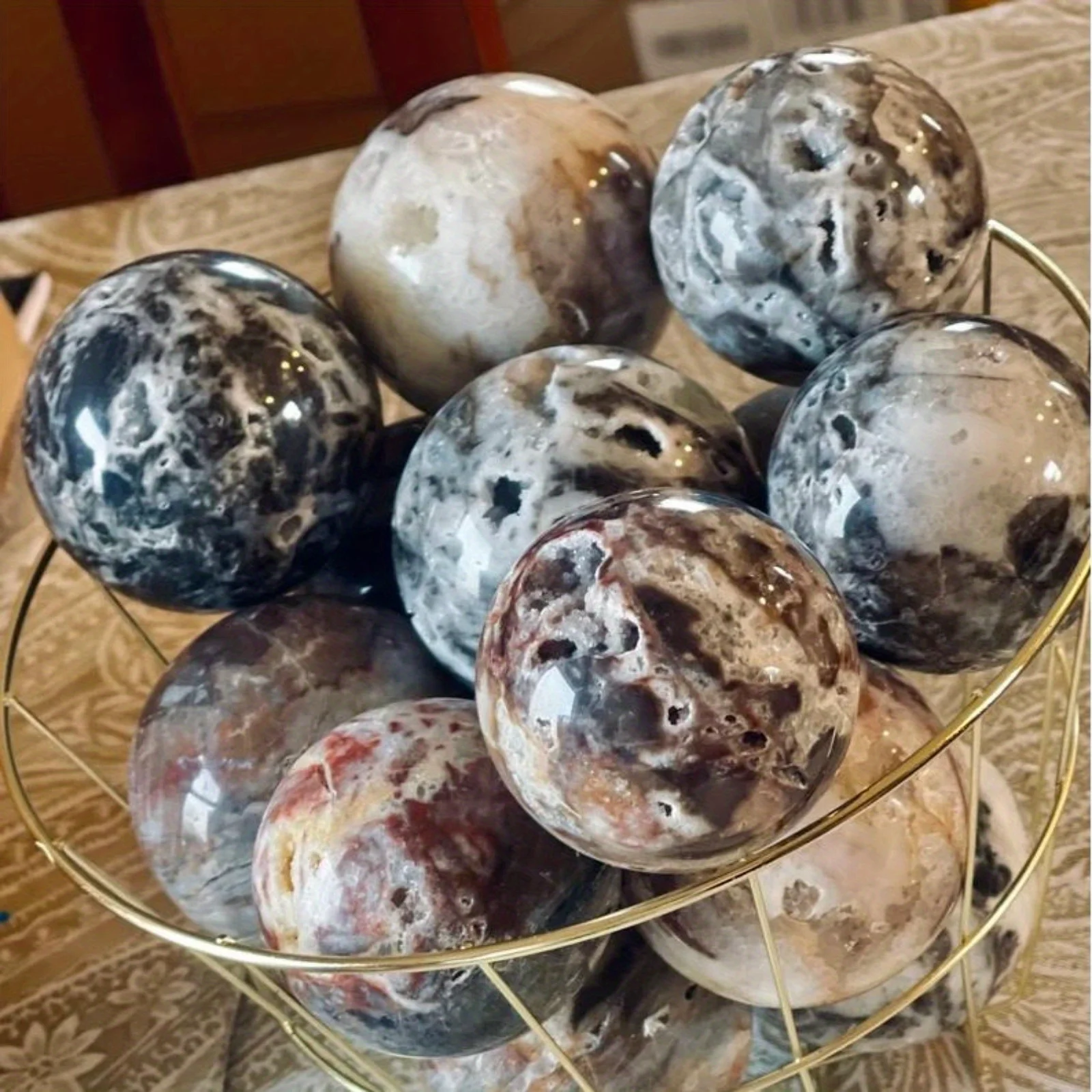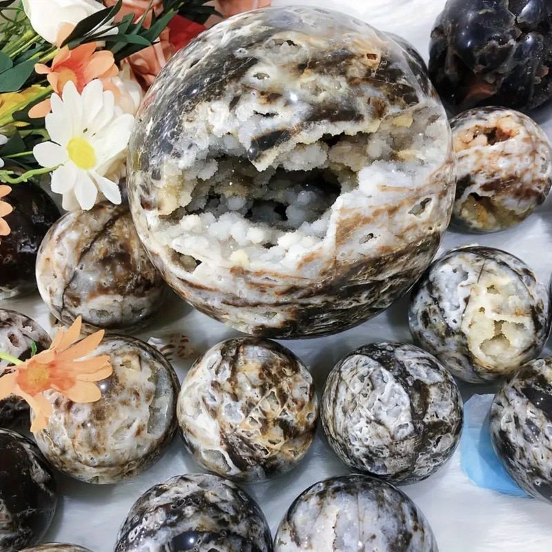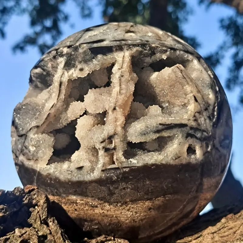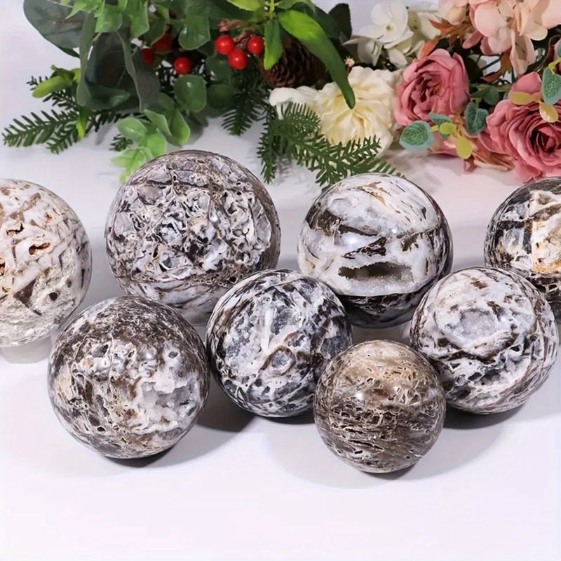 1pc Unique Sphalerite Crystal Sphere - Gray & Black Mineral Ornament with Intricate Patterns, Perfect for Jewelry Making