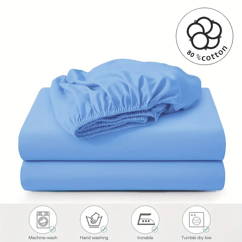 1pc Wash Cotton Fitted Sheet,30cm Deep Pocket Mattress Cover, Breathable and Comfortable, Suitable for Bedroom