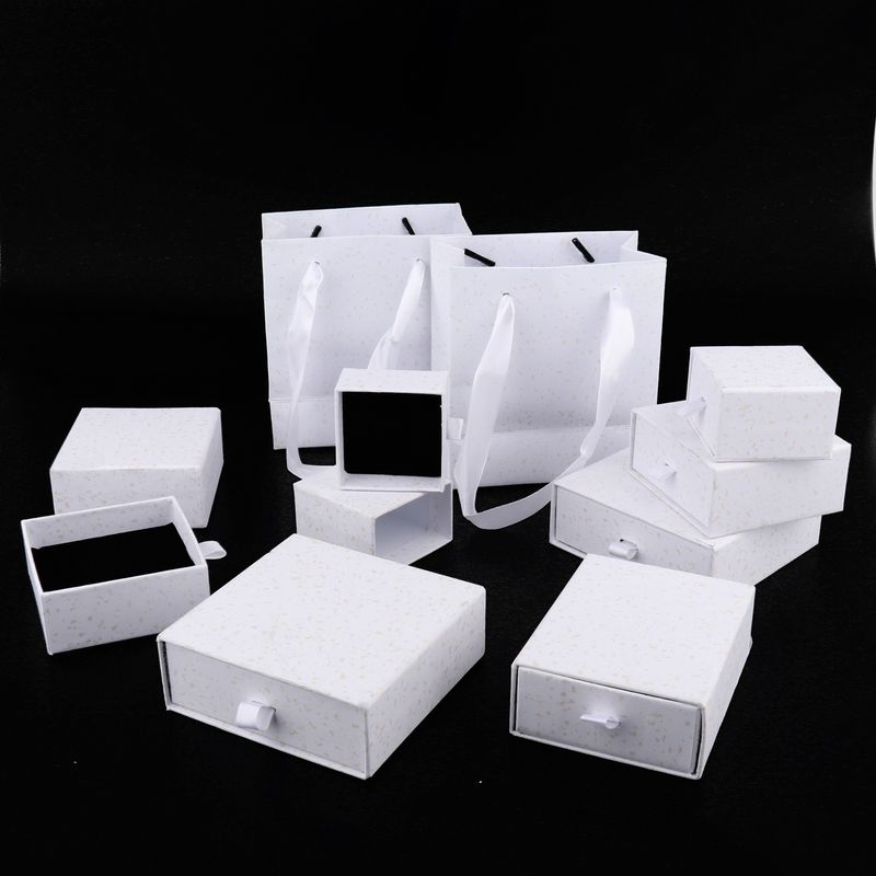 1Pc White Golden Spot Thick Kraft Paper Drawer Jewelry Box Greeting Card for Necklace Bracelet Ring Gift Display Case Packaging