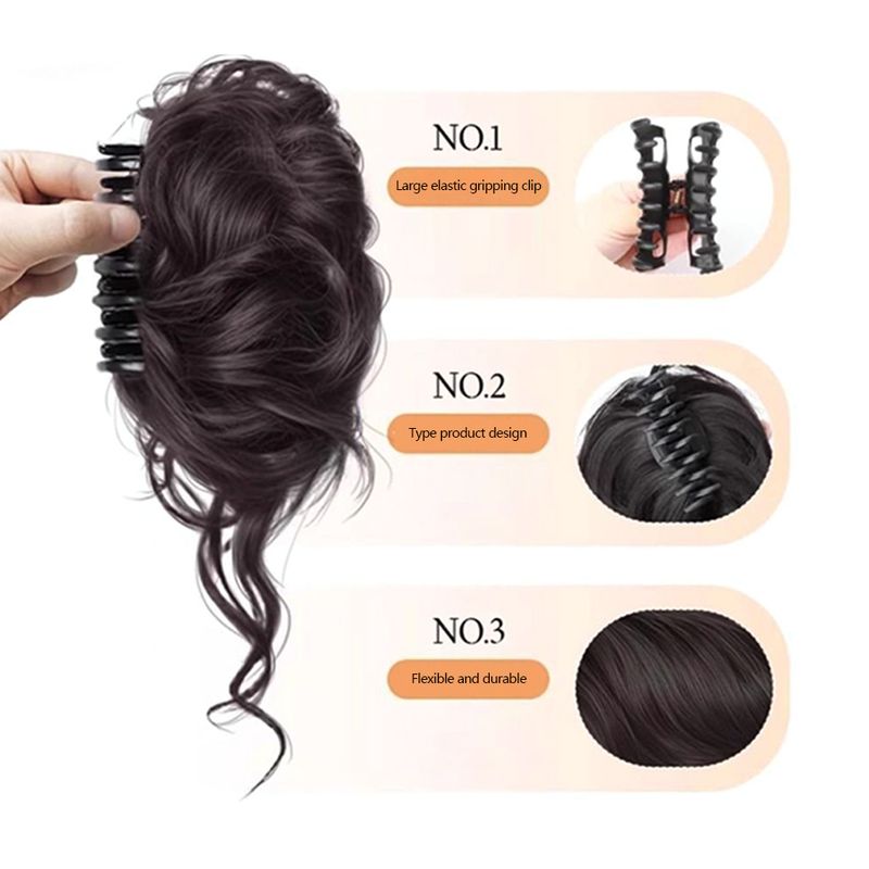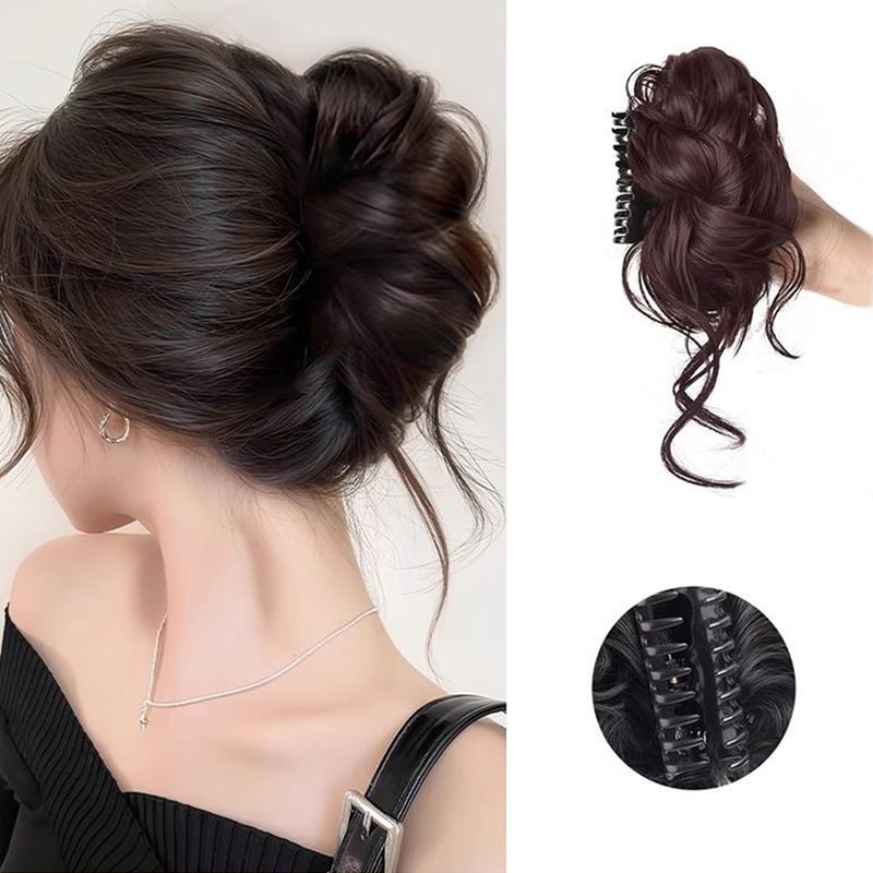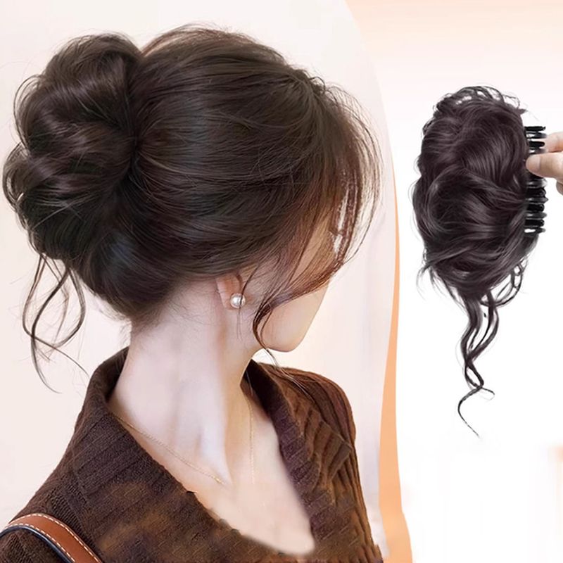 1Pc Women's Hair Bun Headband High and Side Ponytail Artificial Hair Extension Natural Hair Volume Increase Flower Bud Head