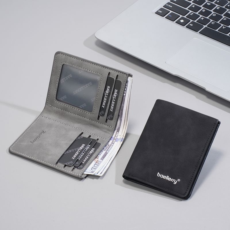 1Pc/Baellerry Fashionable Men's Short Wallet, Anti-Theft Design, Compact Bi-Fold Style, Men's Rfid Anti-Theft Wallet, Slim and Simple Retro Wallet