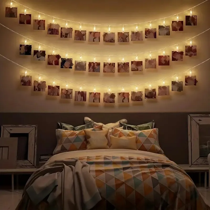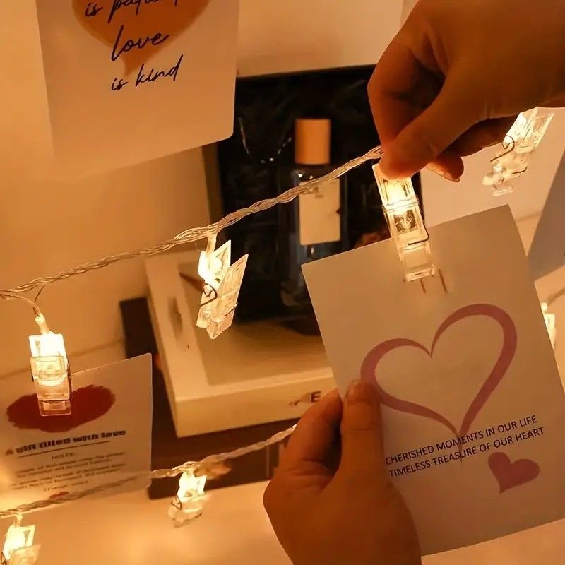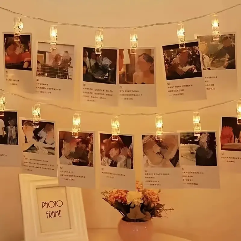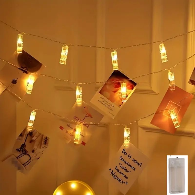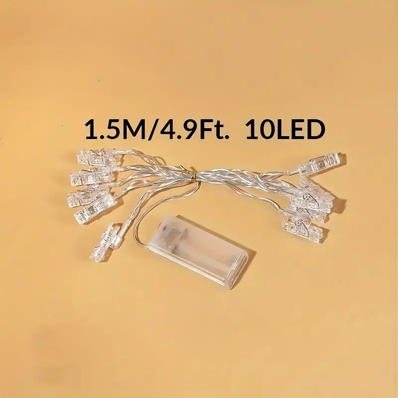 1PC1.5M10LED/3M20LED battery box photo clip string light, suitable for hanging photo card pictures, suitable for party, bedroom