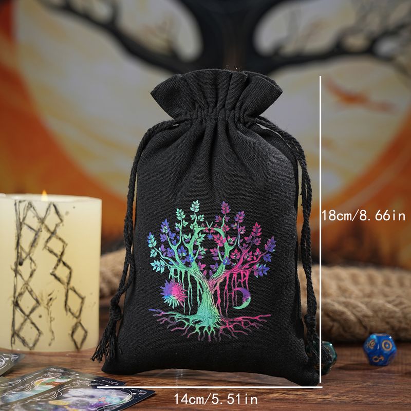 1Pcs 14x22cm Tarot Card Storage Bag Tree of Life Moon Phase Runes Pattern Witch Divination Tarot Pouch for Dice Cosmetic Jewelry