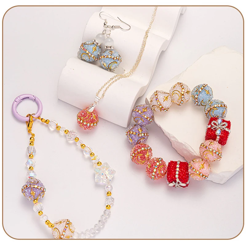 The rhinestone ball beads are suitable for making DIY jewelry, bracelets, necklaces, lanyards, earrings, beaded sticks, chandeliers, etc., full of various design possibilities and easily applied to various crafts.
