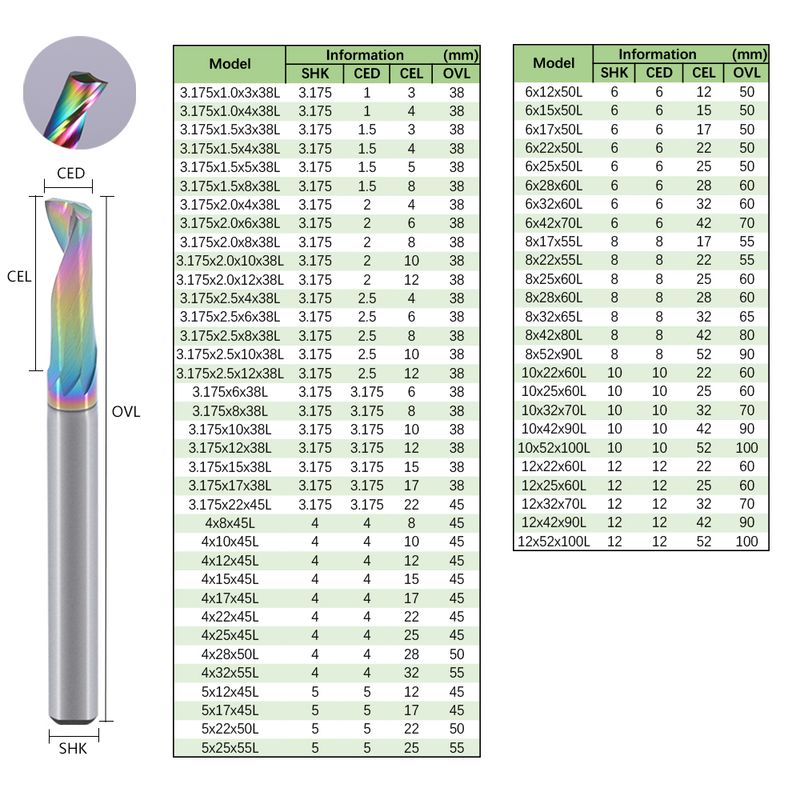 Cutting edge diameter(CED): 3.175mm,4mm,5mm,6mm,8mm,10mm