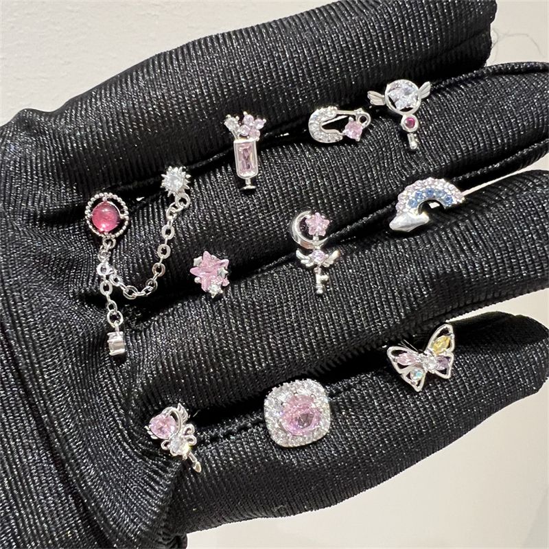 1PCS Cute Pink Zircon 316L Stainless Steel Ear Bone Nail New Fashion Y2K Punk Small Earring for Women Cochlea Jewelry Party Gift