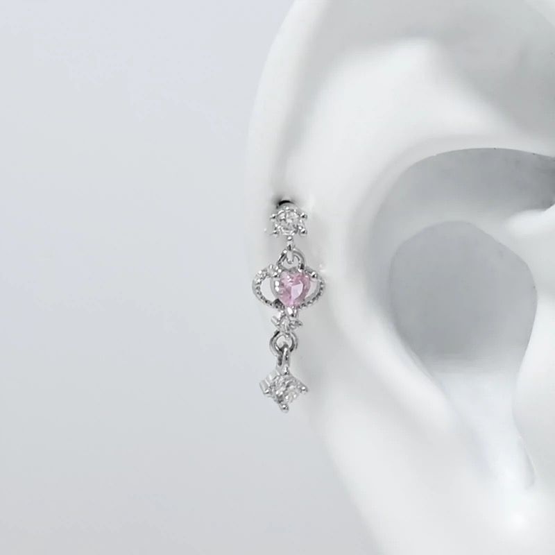 1PCS Cute Pink Zircon 316L Stainless Steel Ear Bone Nail New Fashion Y2K Punk Small Earring for Women Cochlea Jewelry Party Gift