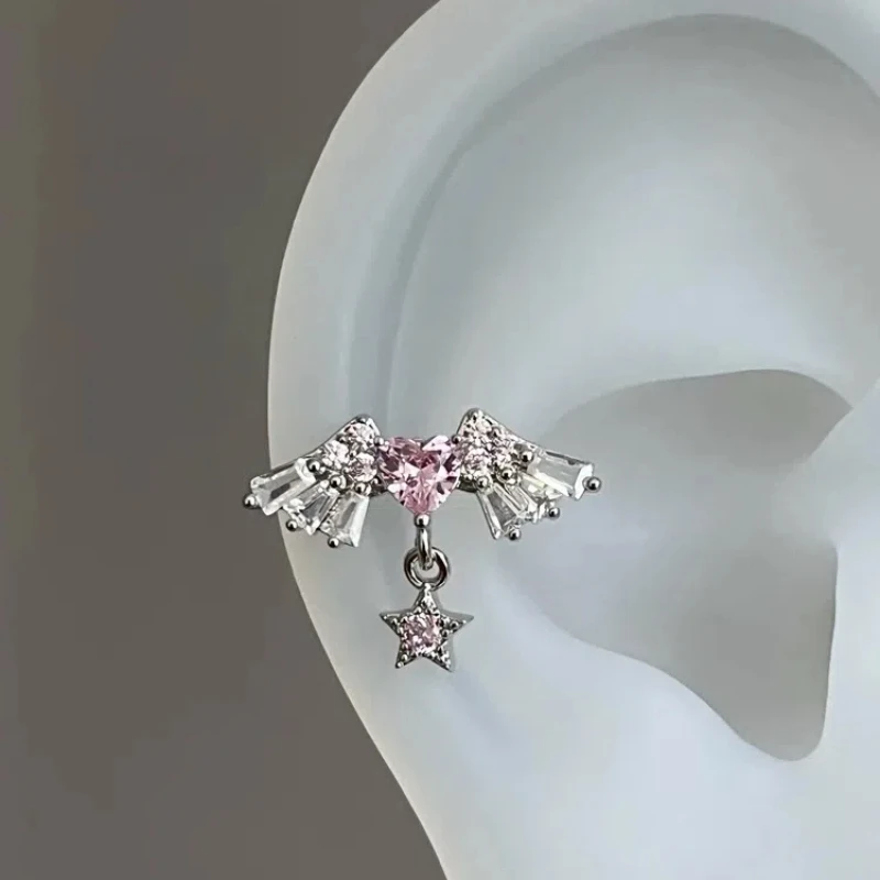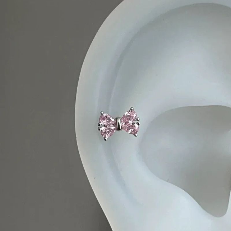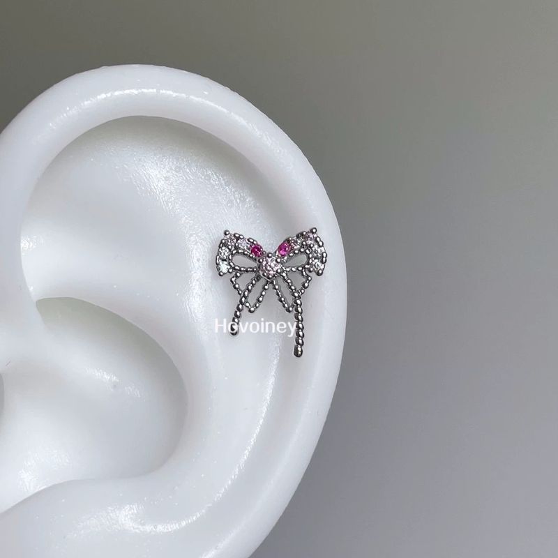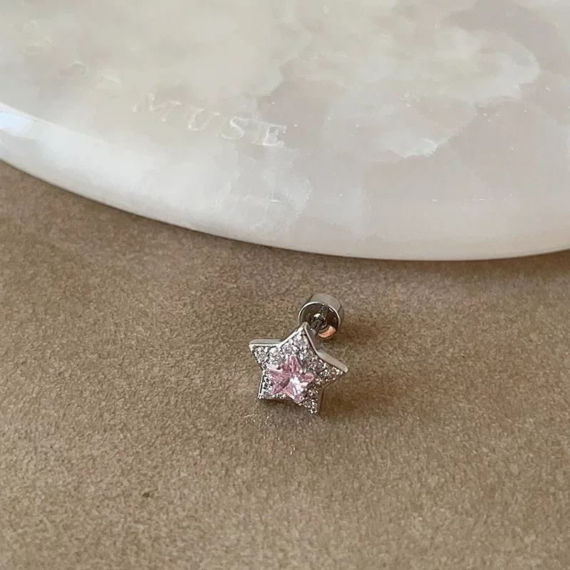 1PCS Cute Pink Zircon 316L Stainless Steel Ear Bone Nail New Fashion Y2K Punk Small Earring for Women Cochlea Jewelry Party Gift