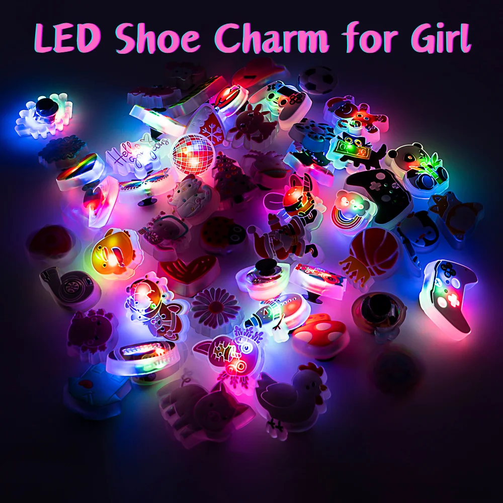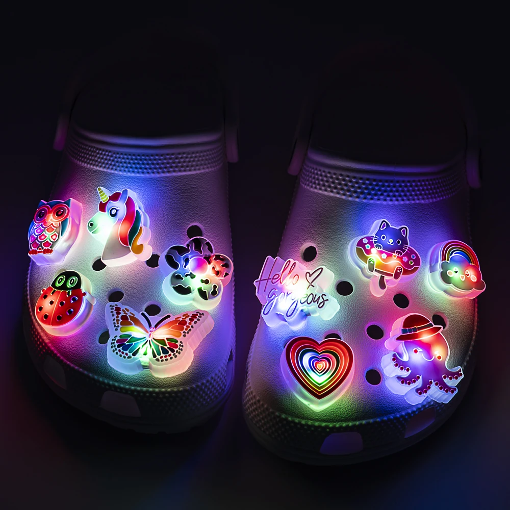 1pcs Lighted LED Shoe Charms for Girls Kids Animal Flower Glowing Accessories Shoe Decorations Vintage Pins Gifts Clog Buckles