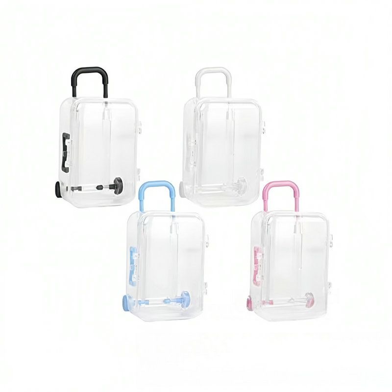 Transparent plastic mini suitcases with visualized front cover, which is easy to observe the items in the storage box. The favor case is very practical.The material ensures the sturdiness and durability of these candy boxes, suitable for long term of use