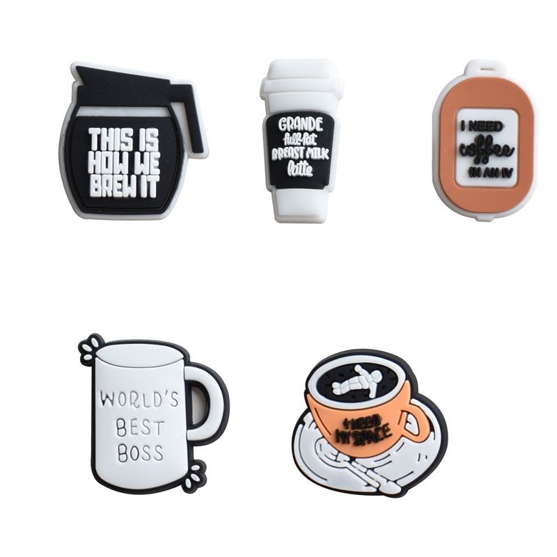 1pcs PVC Shoe Charms for Crocs Accessories Coffee Drink Badge Women Sandals Buckle Kids Pins Men Decoration Jeans X-mas Gift