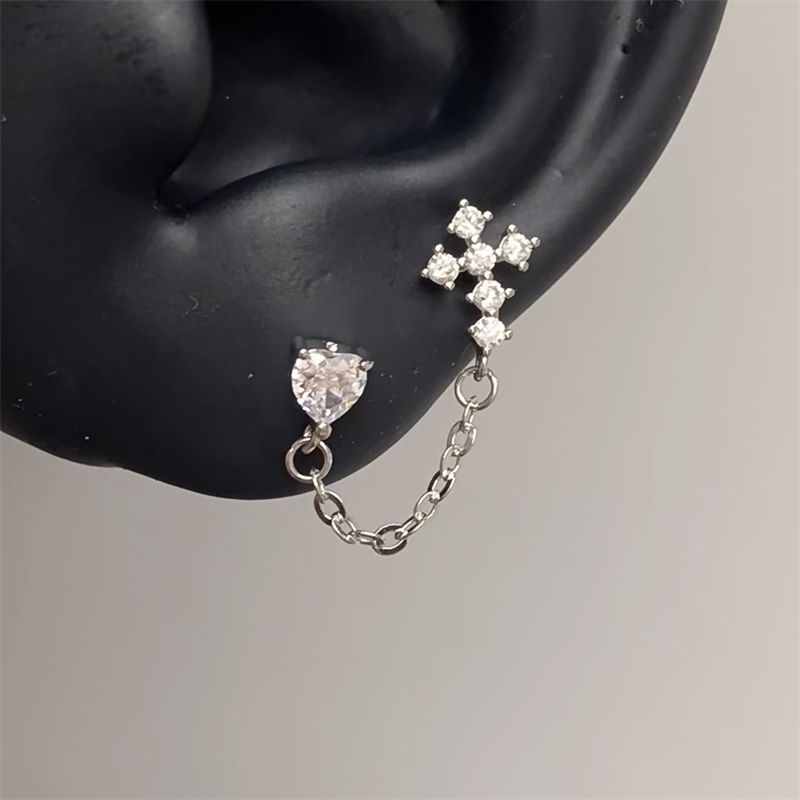 1pcs Quality Shiny Cross Zircon 316L Stainless Steel Ear Bone Nail Y2K Style Silver Color Earring for Women Cochlear Accessories