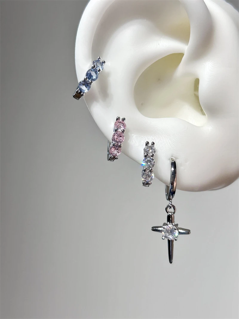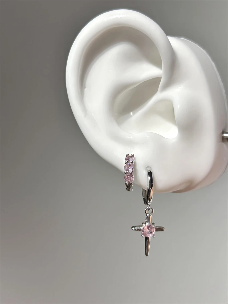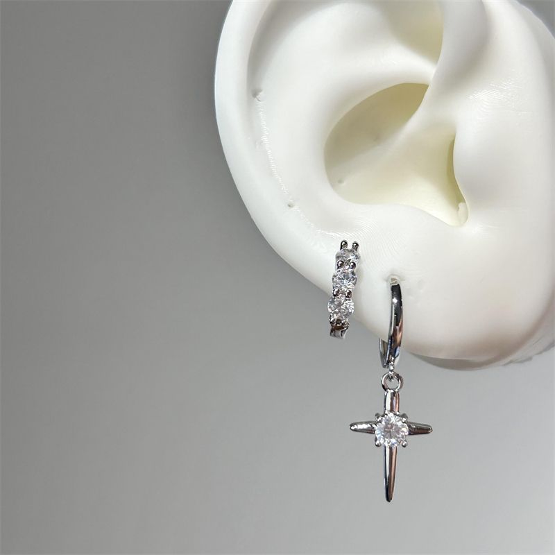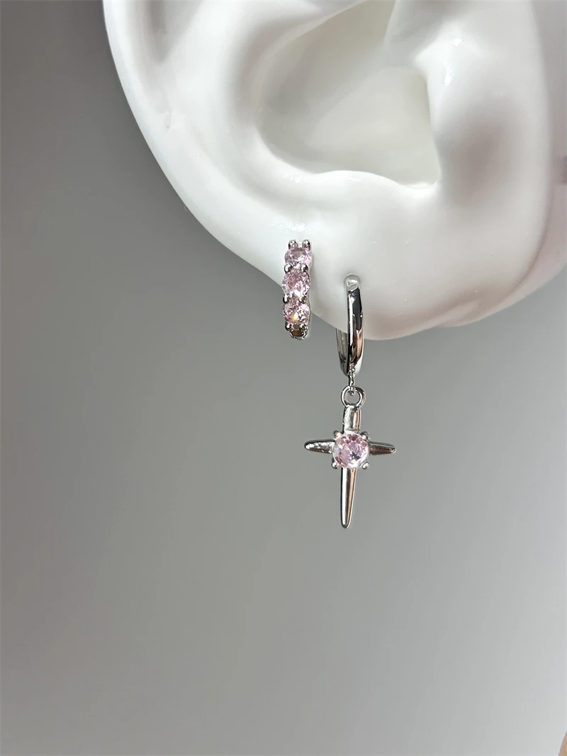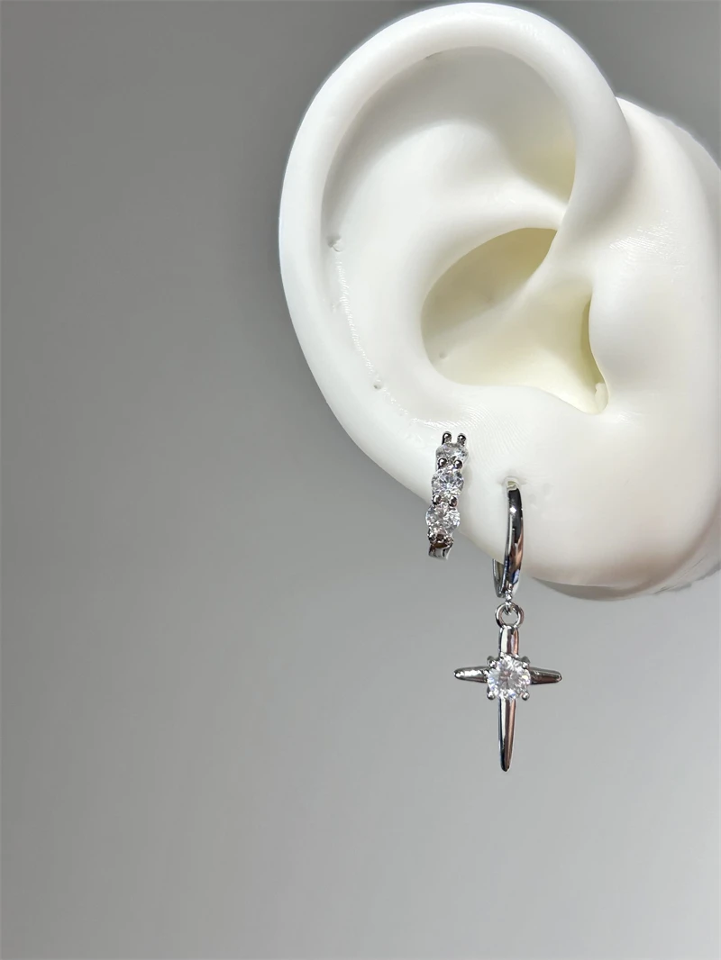 1pcs Shiny Zircon Cross Earrings for Women New Fashion Stainless Steel Ear Bone Nail Ear Accessories