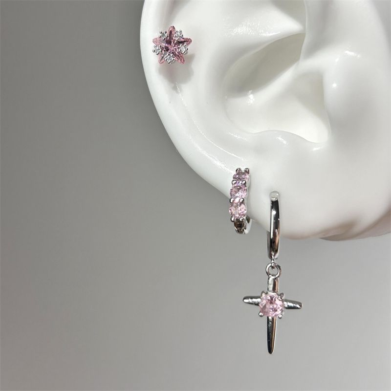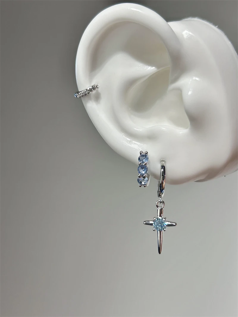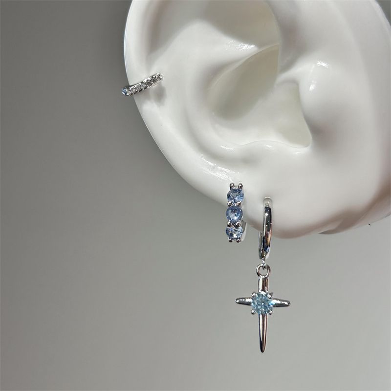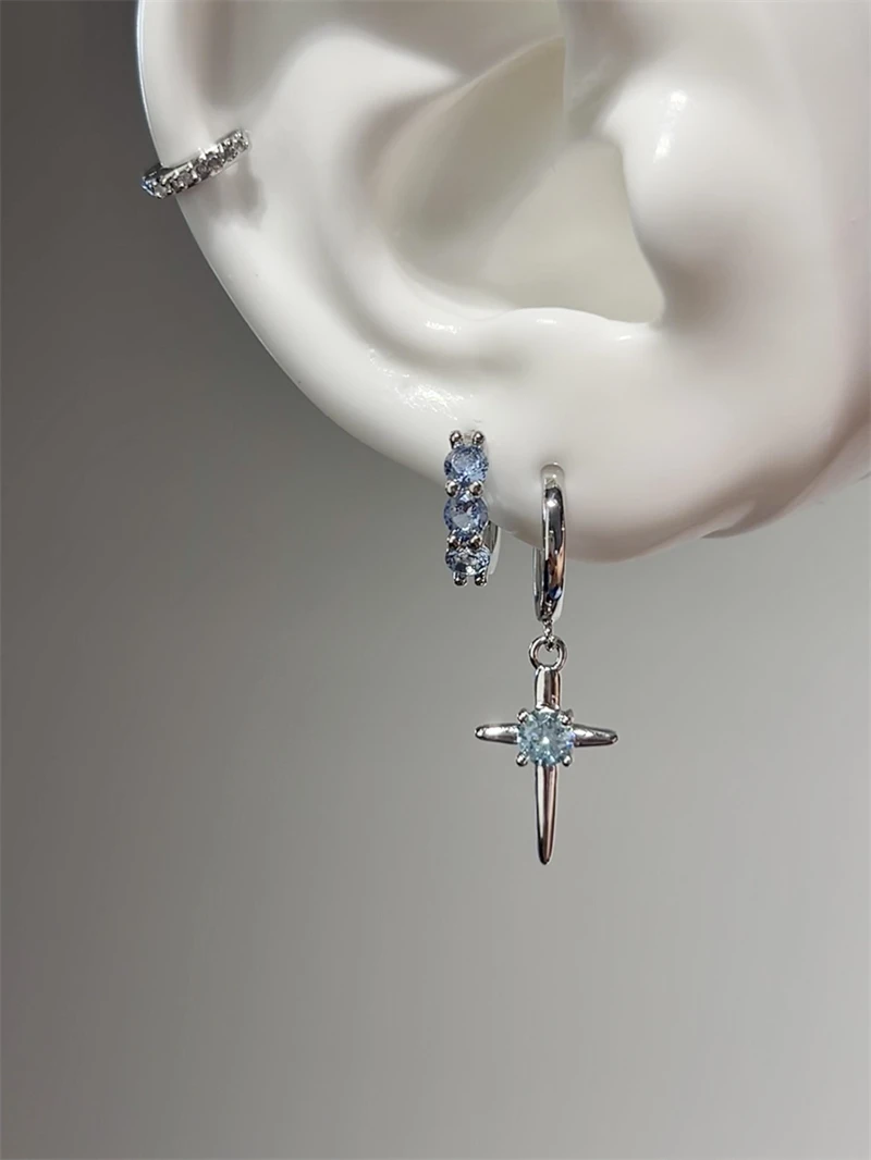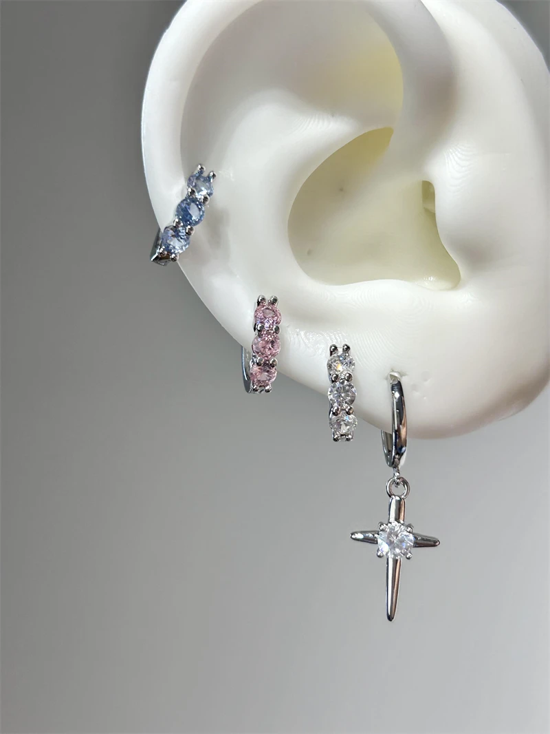 1pcs Shiny Zircon Cross Earrings for Women New Fashion Stainless Steel Ear Bone Nail Ear Accessories