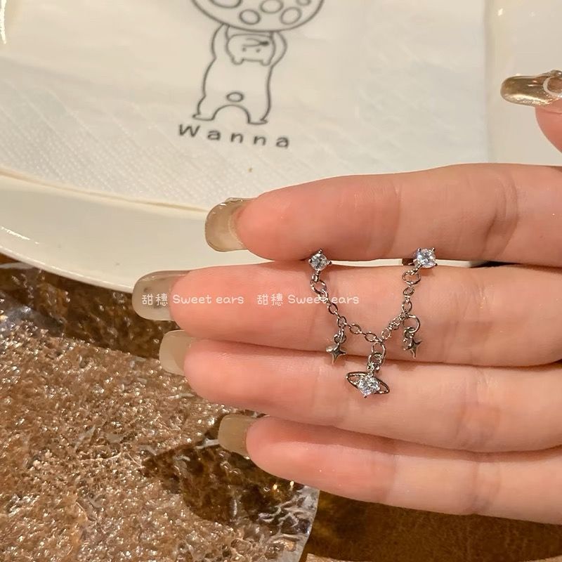 1PCS Star and Moon Double Chain Ear Hole 316L Stainless Steel Ear Bone Nail Y2K Fashion Titanium Steel Ear Jewelry for Women