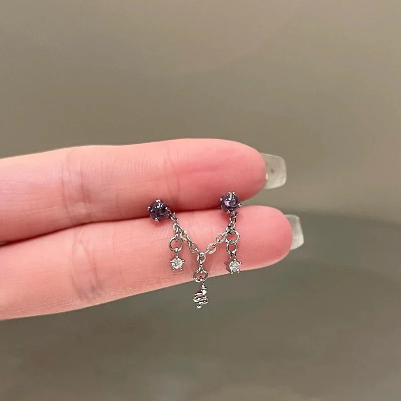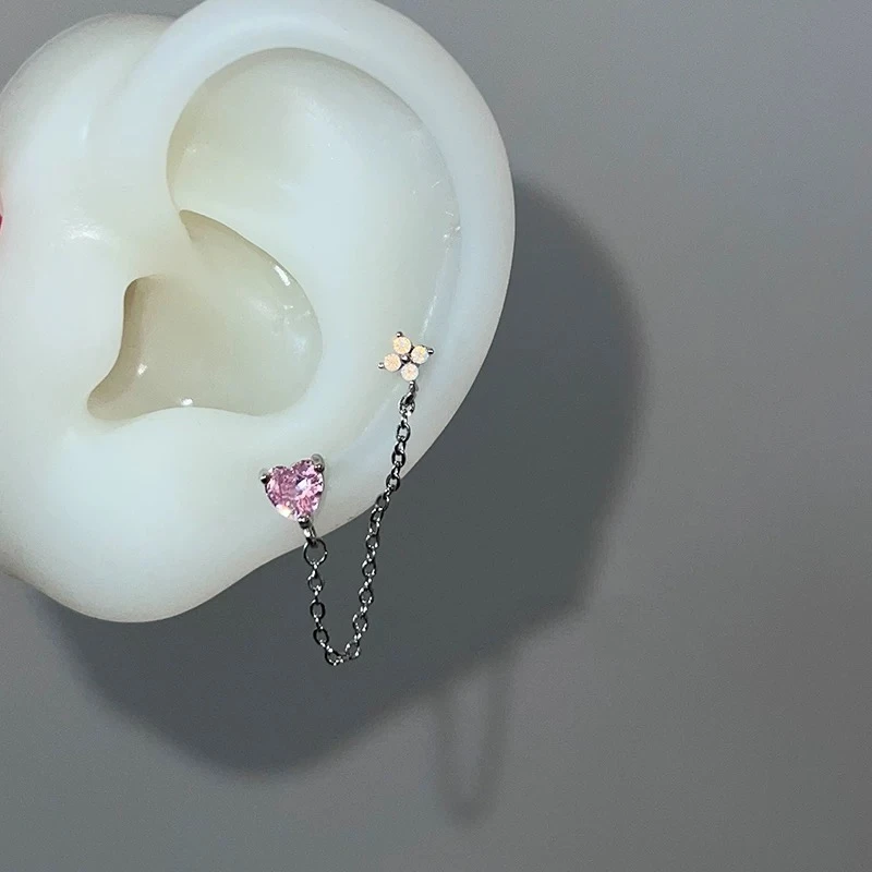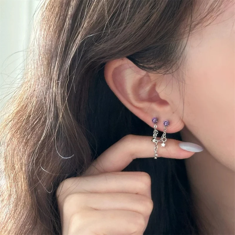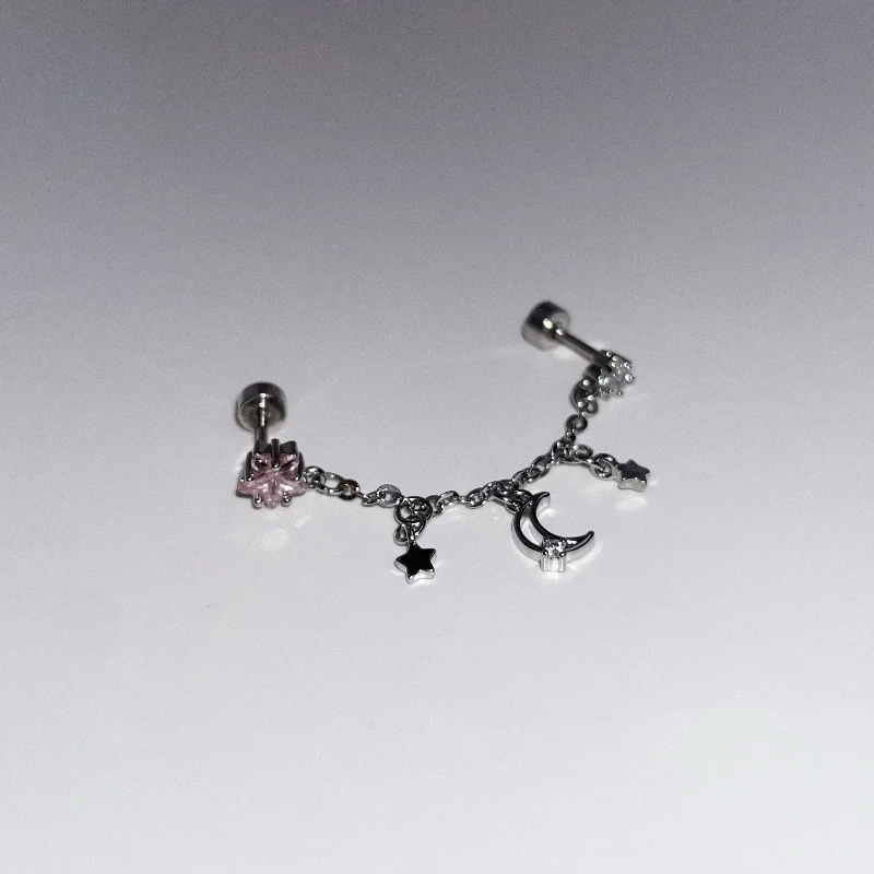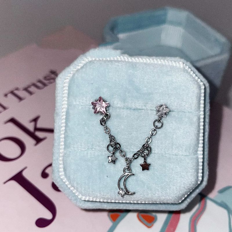 1PCS Star and Moon Double Chain Ear Hole 316L Stainless Steel Ear Bone Nail Y2K Fashion Titanium Steel Ear Jewelry for Women