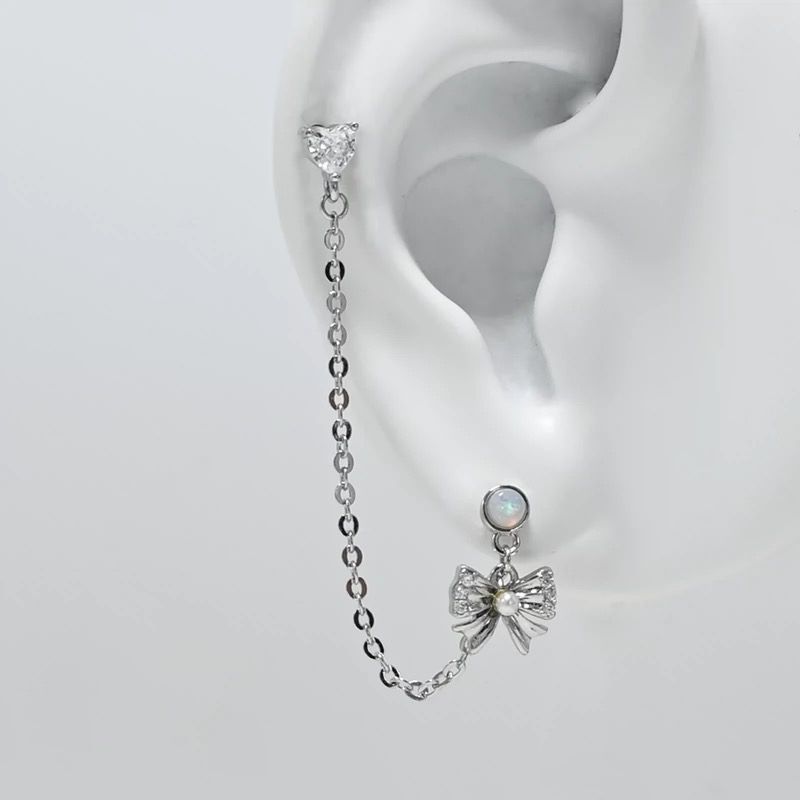 1PCS Star and Moon Double Chain Ear Hole 316L Stainless Steel Ear Bone Nail Y2K Fashion Titanium Steel Ear Jewelry for Women
