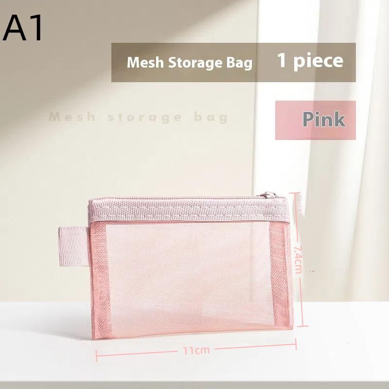 1Pcs Travel Storage Carry Pouch With Zippered Portable Mini Zipper Mesh Storage Bag Coin Purse Small Square Mesh Coin Purse