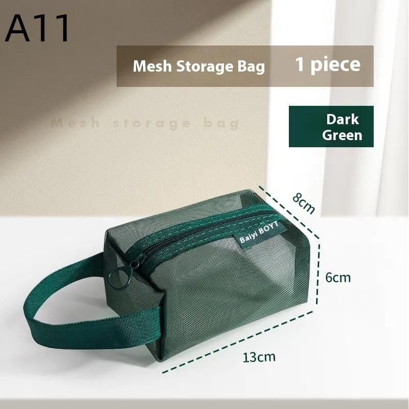 1Pcs Travel Storage Carry Pouch With Zippered Portable Mini Zipper Mesh Storage Bag Coin Purse Small Square Mesh Coin Purse