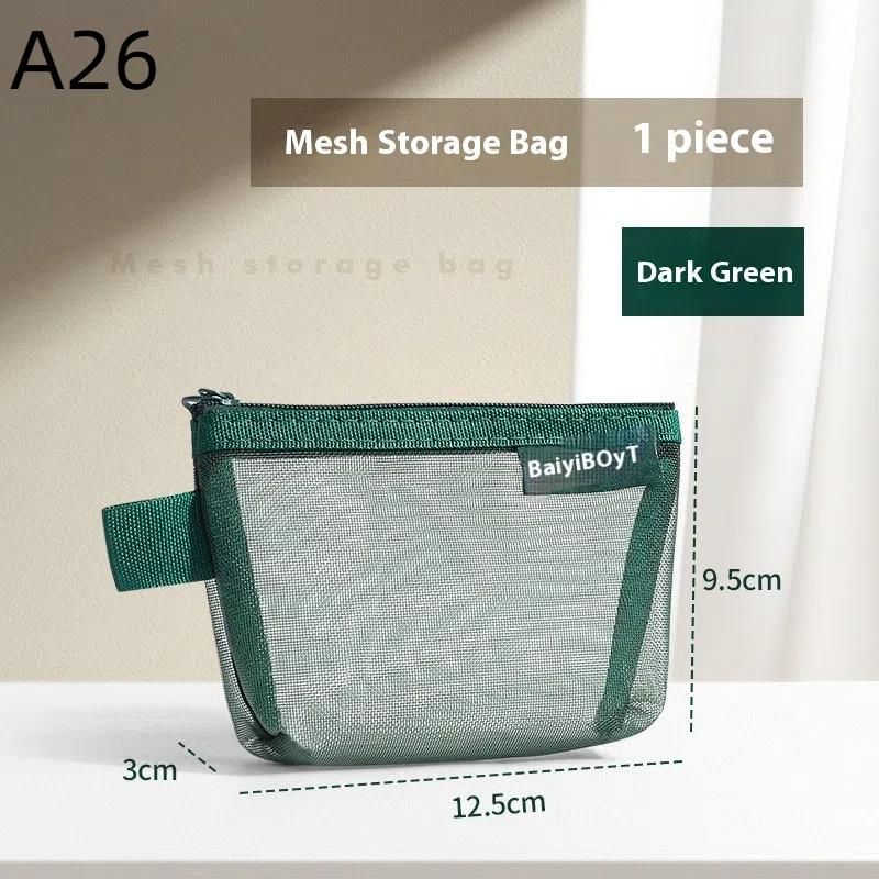 1Pcs Travel Storage Carry Pouch With Zippered Portable Mini Zipper Mesh Storage Bag Coin Purse Small Square Mesh Coin Purse