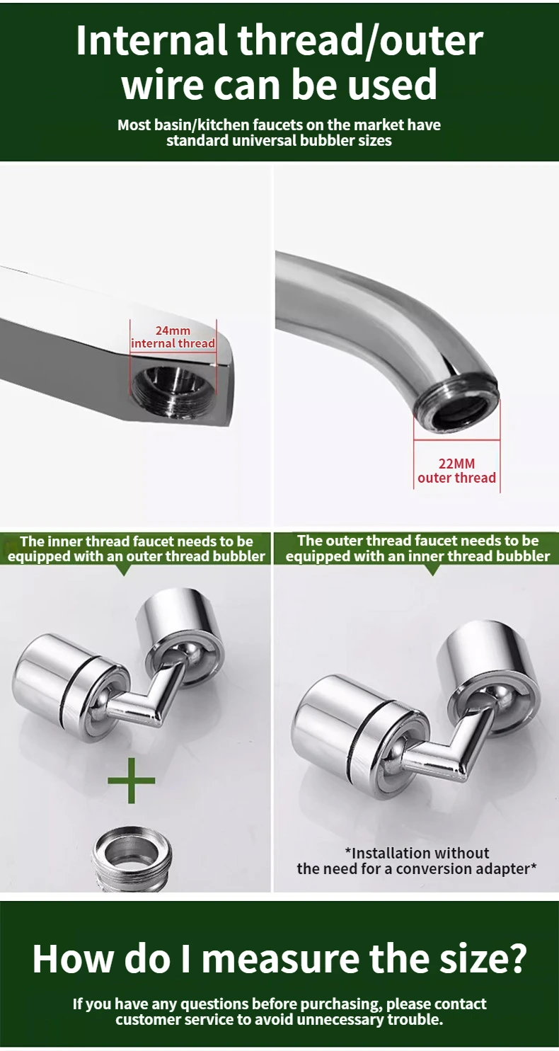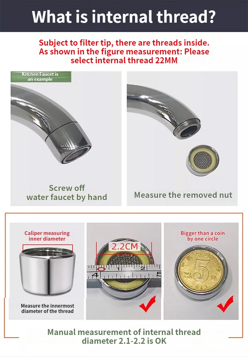 *Measure your tap thread before order. 24mm Male Thread Aerator(M24) will fit your Female Thread Faucet Tap(The female thread diameter on your faucet is approximated 23.5-24mm actual measurement)