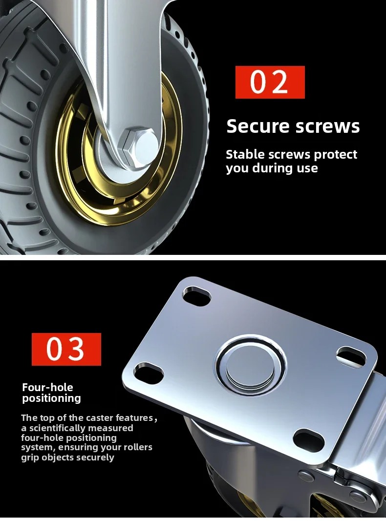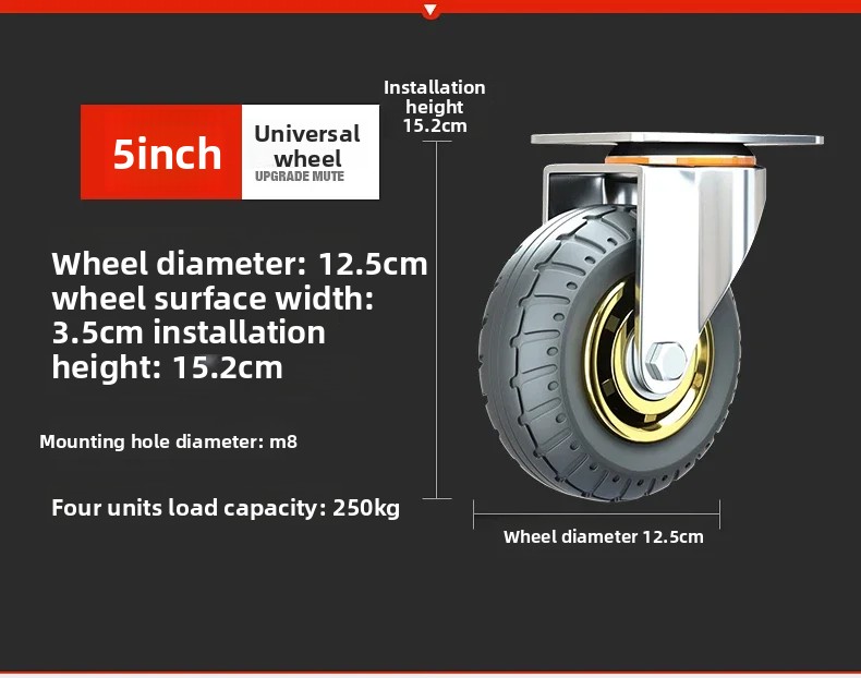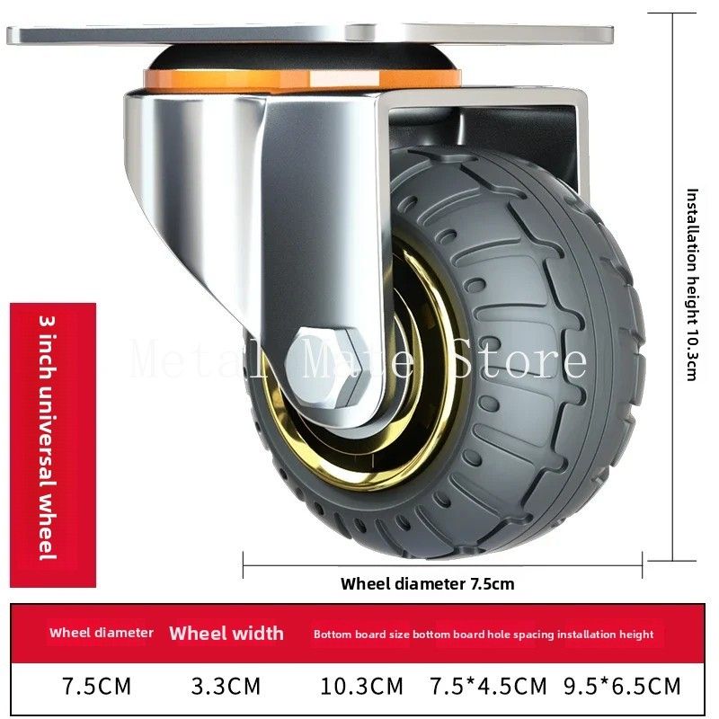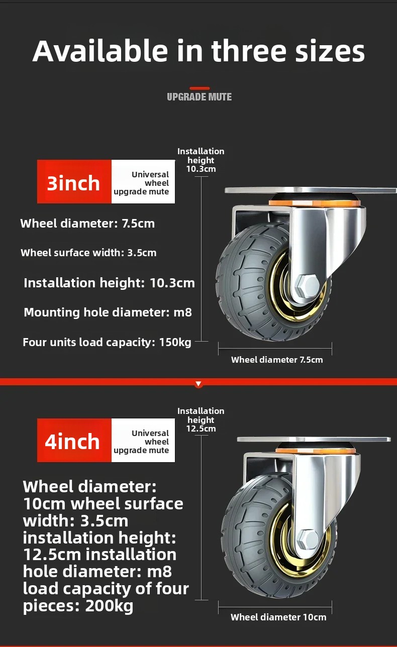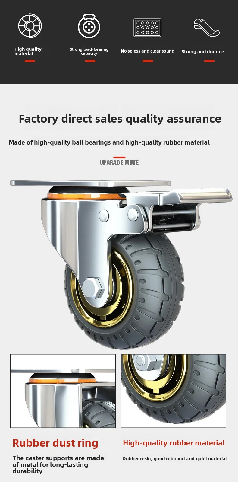 1PCS Universal Soft Rubber Furniture Caster with One-Way Quiet Brake Wheel 3/4/5 Inch for Desk Carts