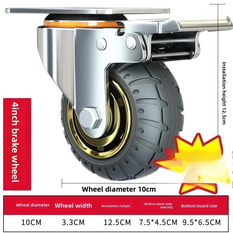 1PCS Universal Soft Rubber Furniture Caster with One-Way Quiet Brake Wheel 3/4/5 Inch for Desk Carts