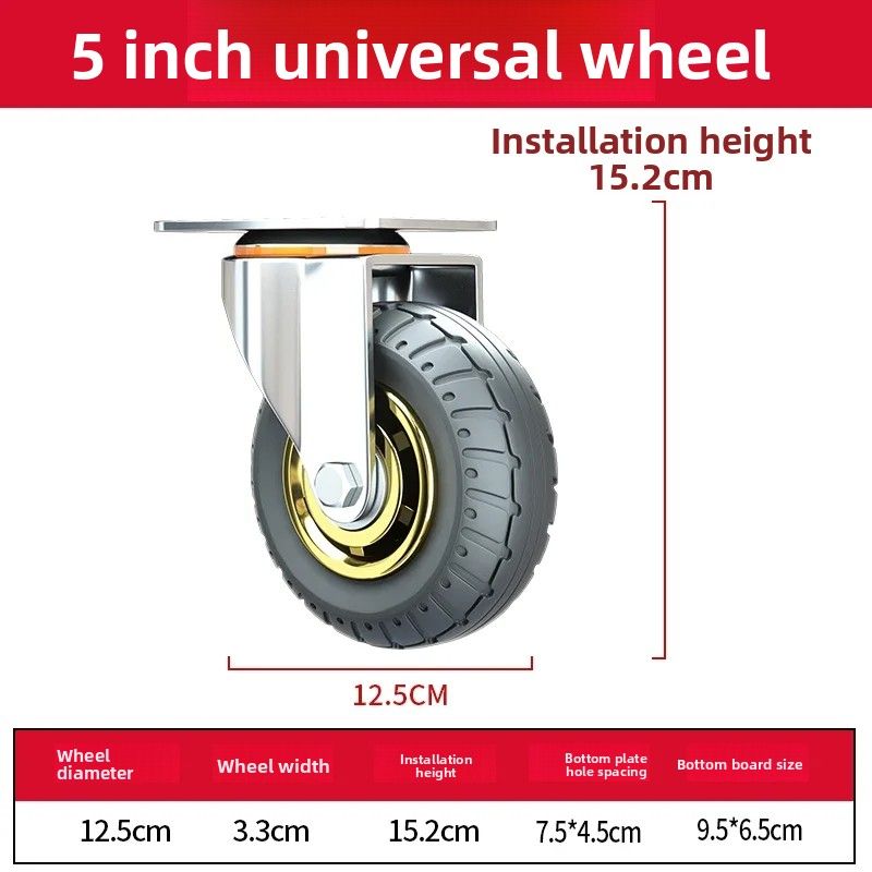 1PCS Universal Soft Rubber Furniture Caster with One-Way Quiet Brake Wheel 3/4/5 Inch for Desk Carts