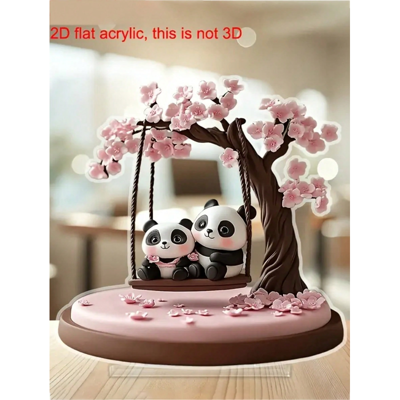 1pcs2D flat pink panda and cherry blossom tree desktop decoration ornament, suitable for decorating restaurants, offices
