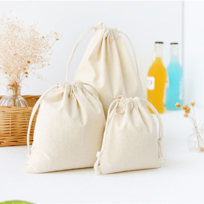 1pcWhite Drawstring Pouches Gift Blank Bags For DIY Cotton Hemp Bags Jewelry Display Packaging Storage 10x12/14x16/19x24/28x26cm